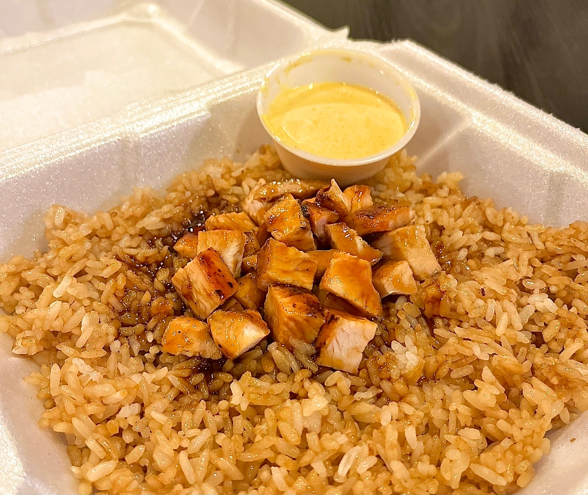Diced teriyaki chicken breast, your choice of rice, and your choice of 1 sauce.