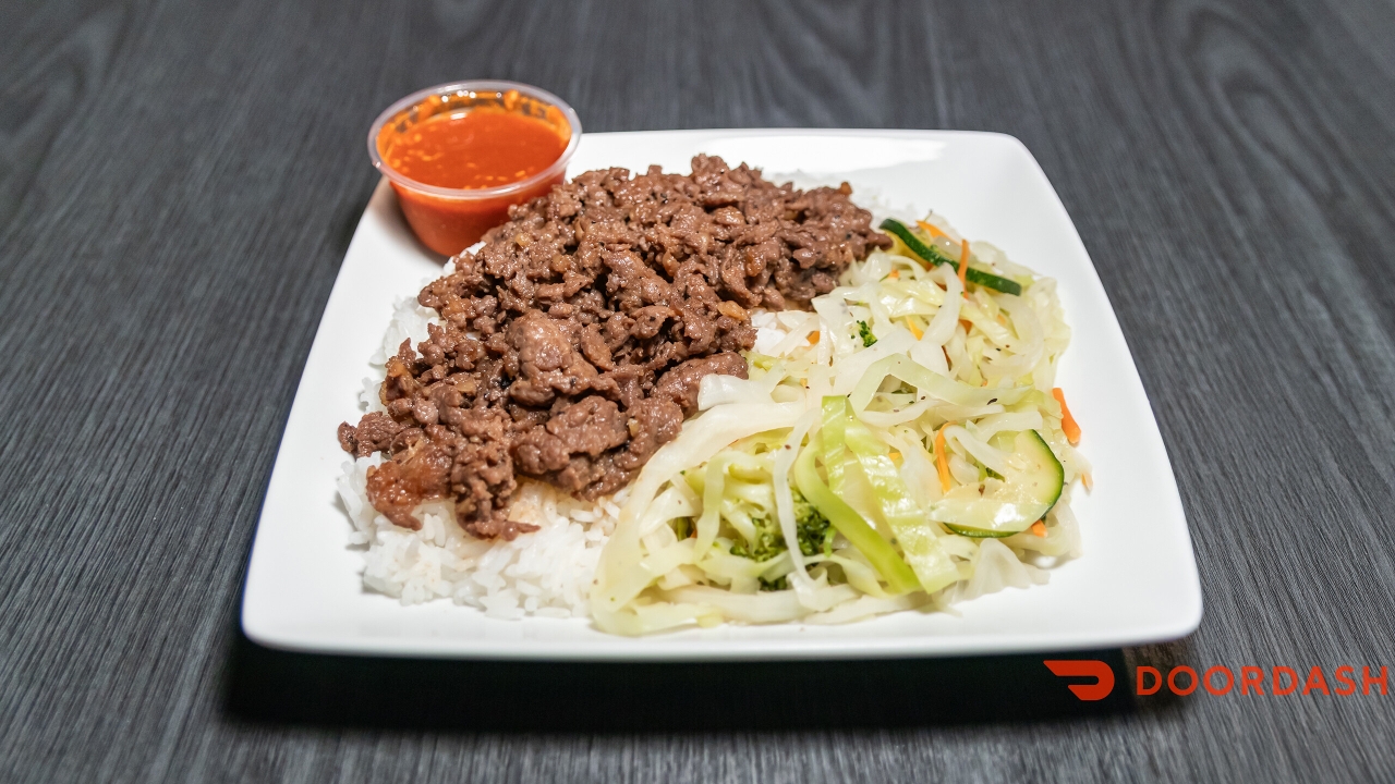 Traditional Korean-style marinated beef. Served with cabbage mix (mixed vegetables), your choice of rice, and your choice of 3 sauces.