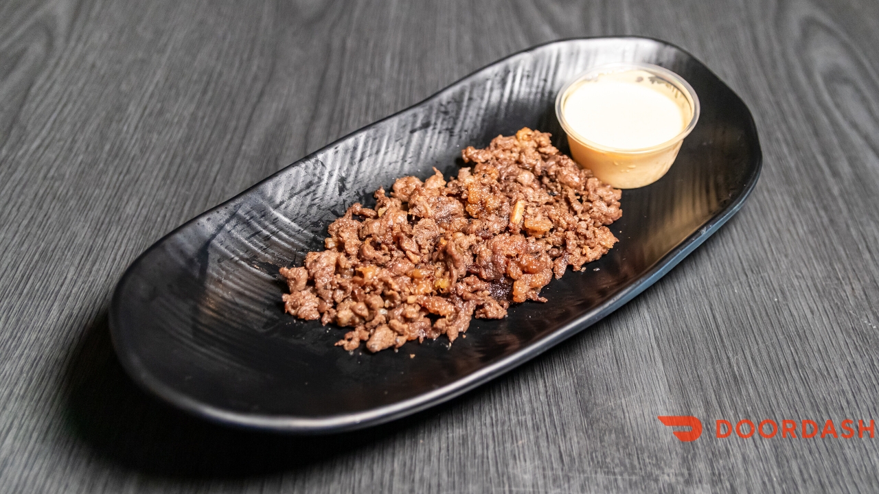 Diced hanger steak. Comes with 1 teriyaki sauce! (Not Cooked to preference)